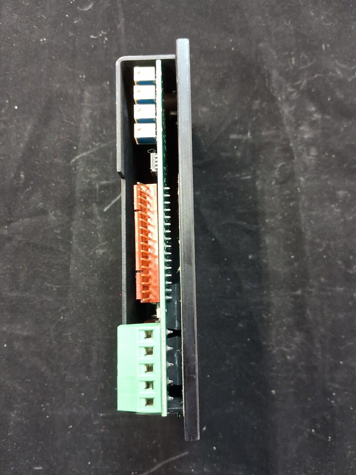 Unit is used, showing minor cosmetic scratches on the black anodized housing but no visible damage to connectors or labels; sold as used industrial electronics.
