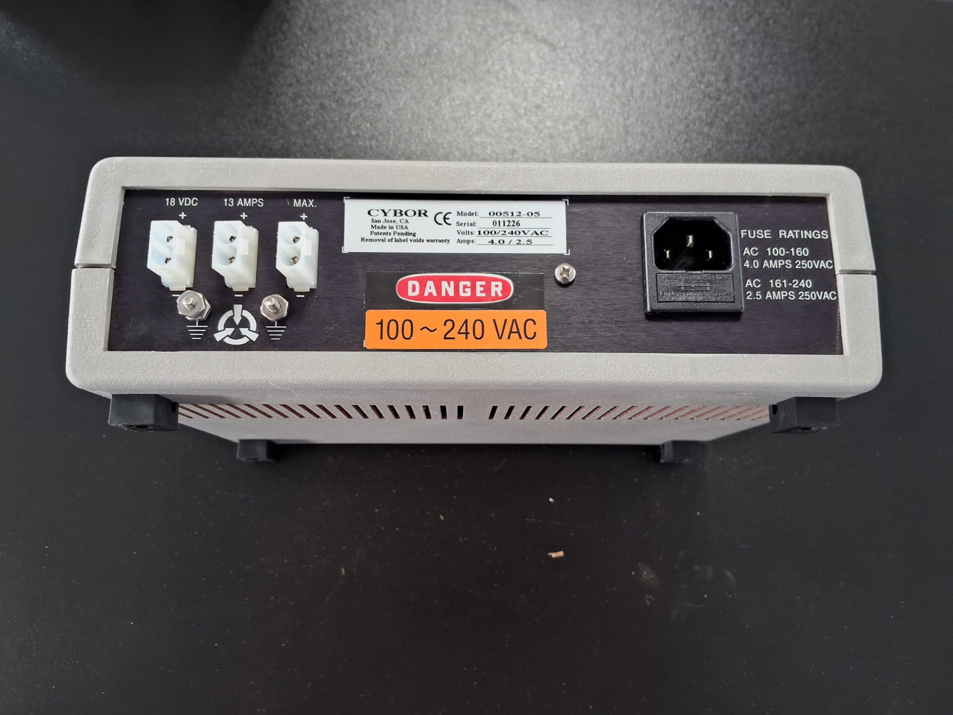 Industrial grade Cybor Power Supply Model 512, 120/240VAC input, 3A output.