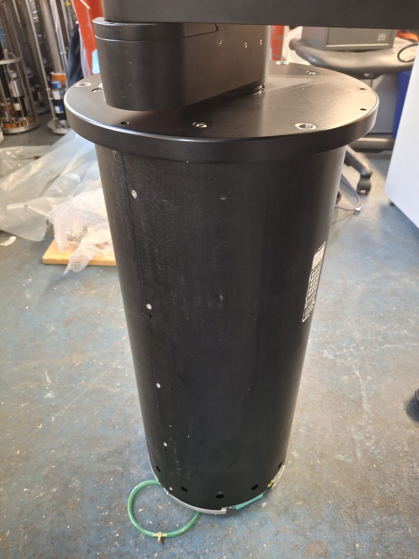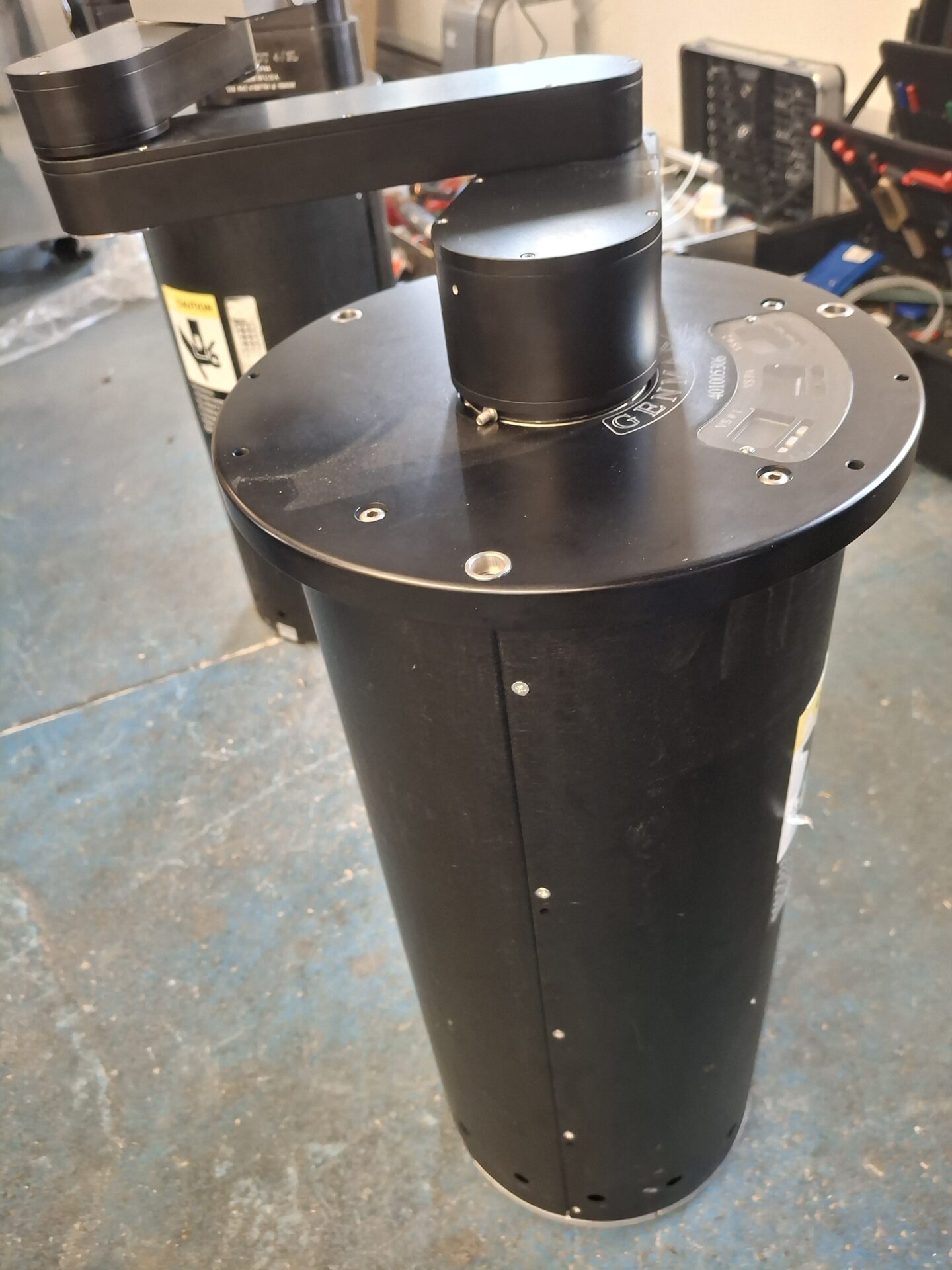 OEM robot for automatic wafer transfer in semiconductor fabs & labs. Supplied as seen with base, arm, safety label, and clean tested chassis; signs of prior use as typical for surplus.
