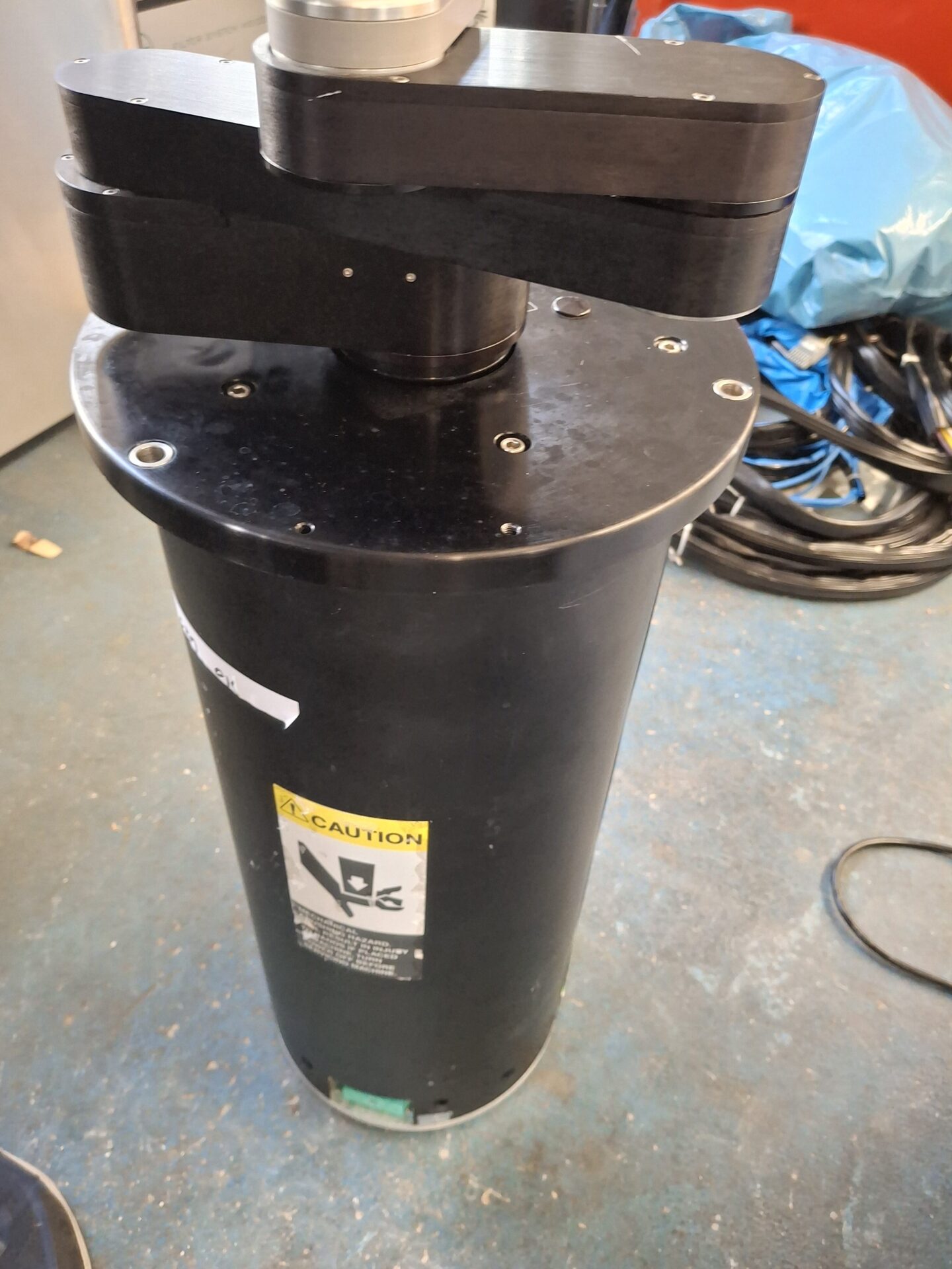 Designed for semiconductor wafer transfer, integration with OEM tools, and cleanroom fabrication. Fully enclosed black chassis, standard caution/safety labeling, original OEM connectors.
