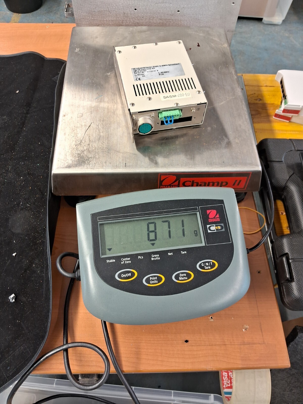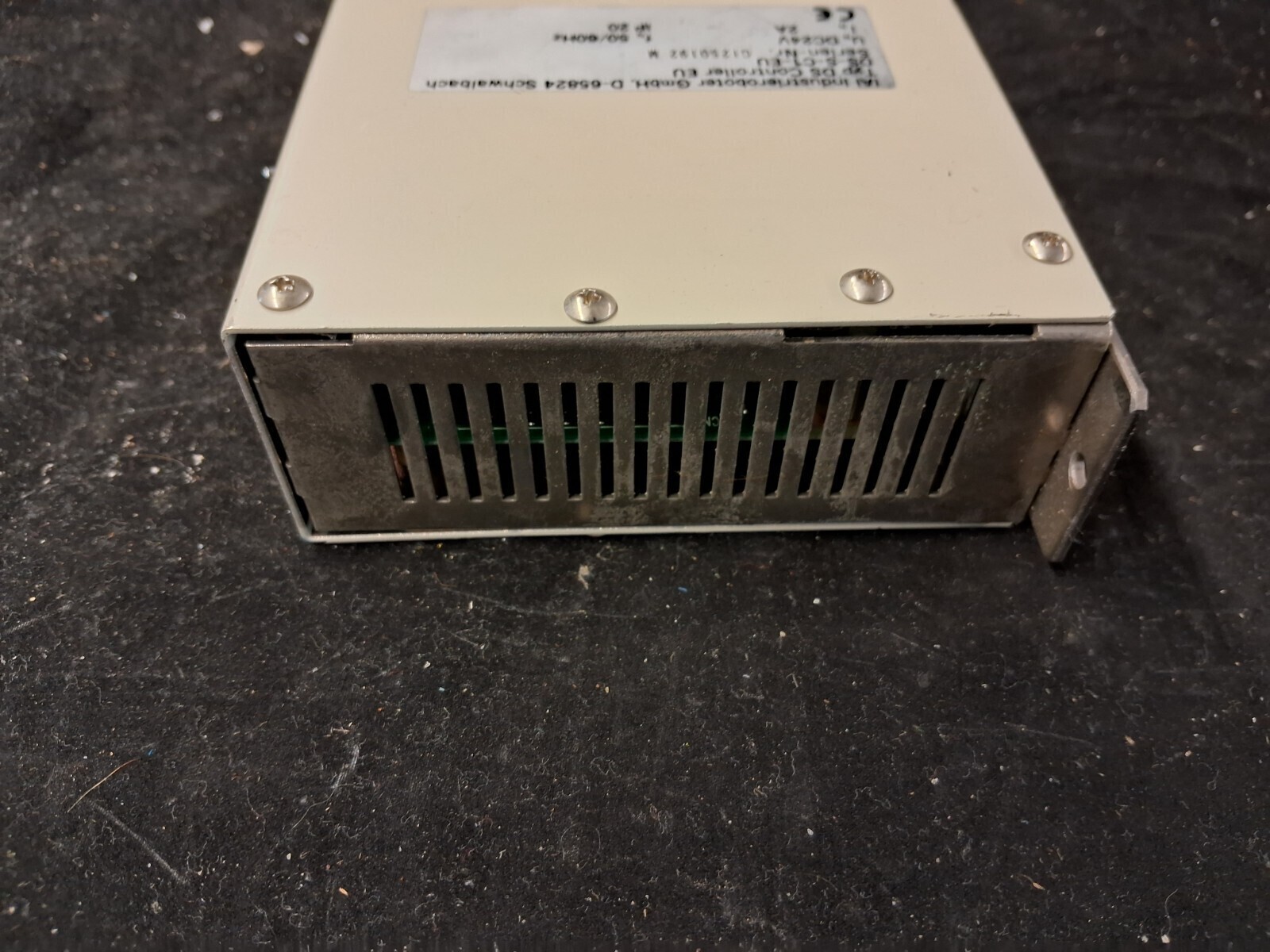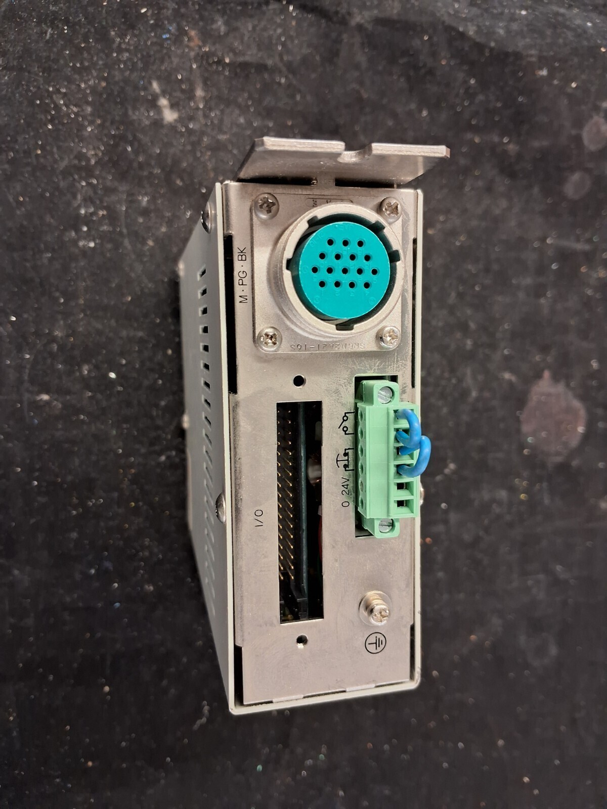 Metal connector EU type with green terminal block power connection. Compatible with IAI DS-SA5M actuator series. Unit weight 877g. Serial number GI250192 M. Used condition with normal cosmetic wear.