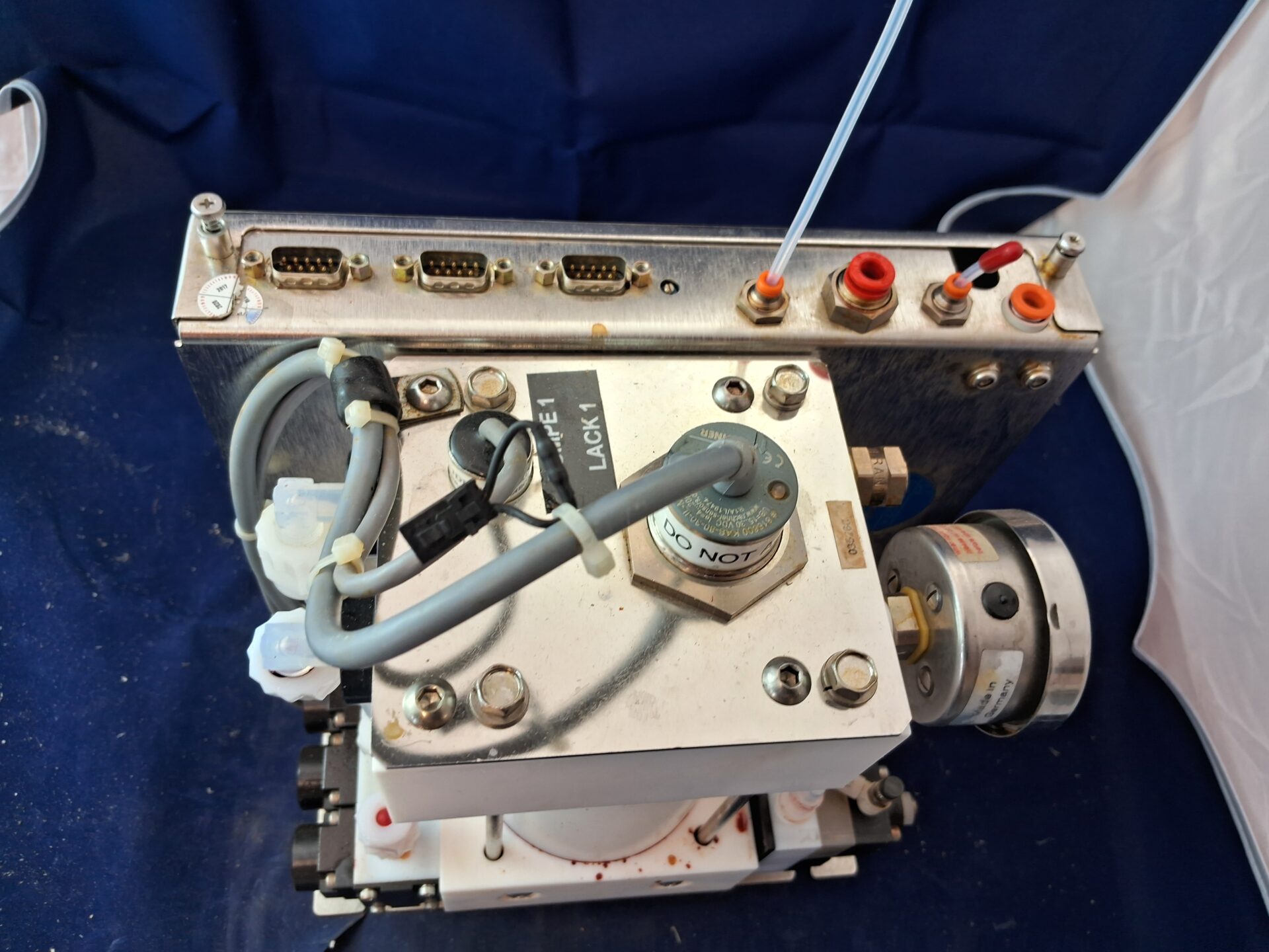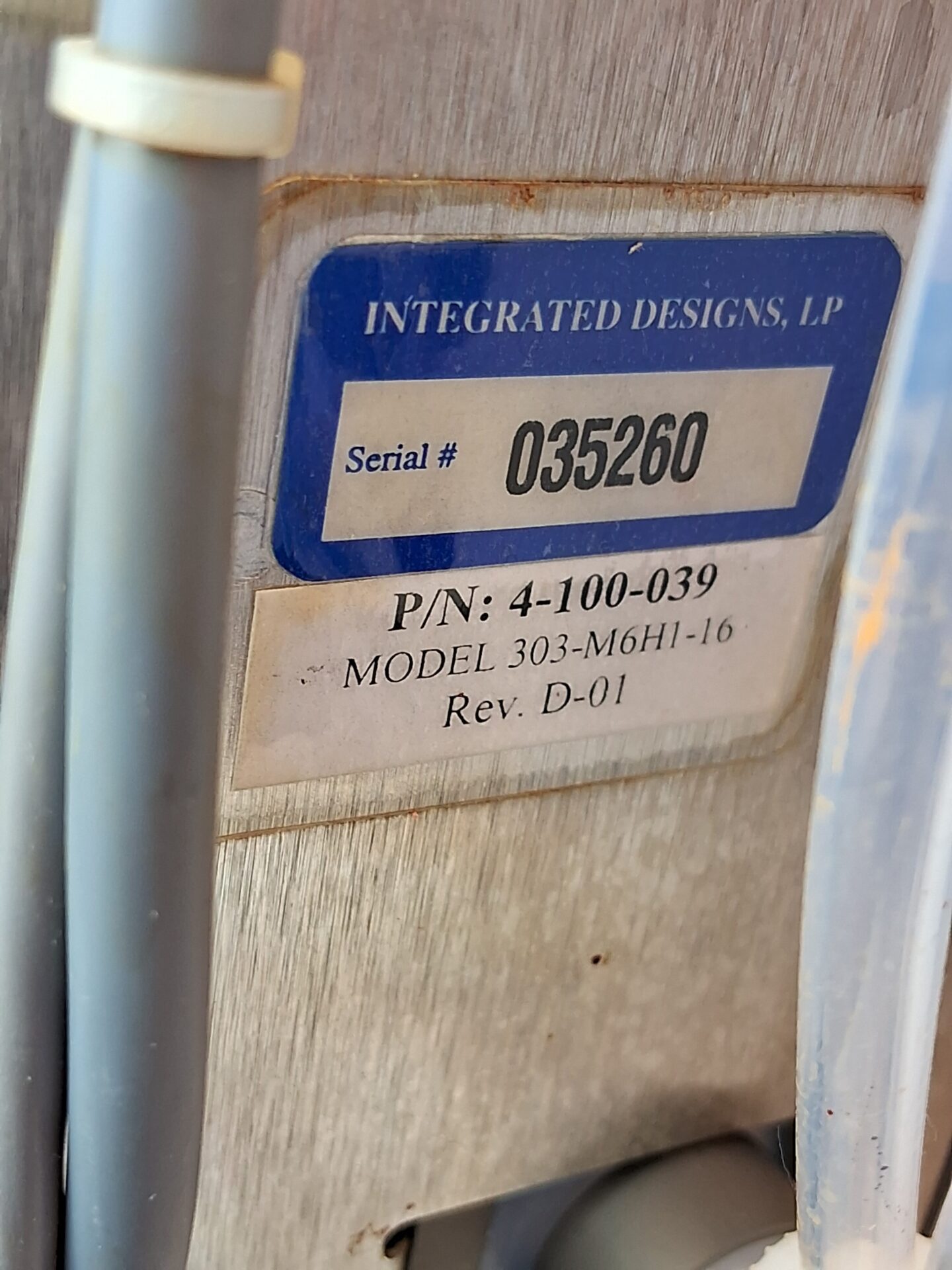 Precision Industrial Instrument Professional mass flow control instrument: Integrated Designs, LP Model 303-M6HI-16 mass flow controller, fully assembled and functional precision instrumentation with complete control interface. Serial Number: 035260, Part Number: 4-100-039, Revision D-01.