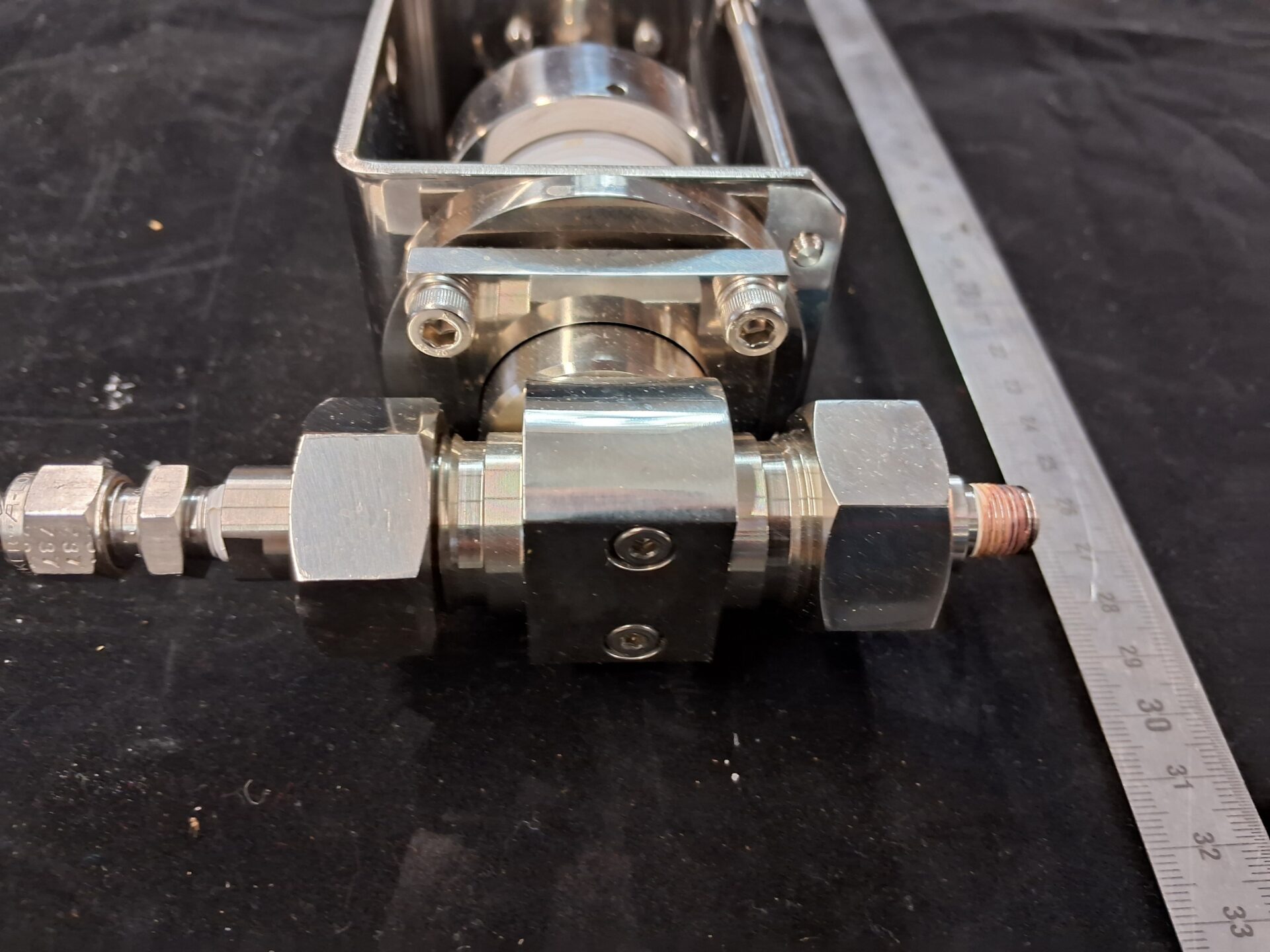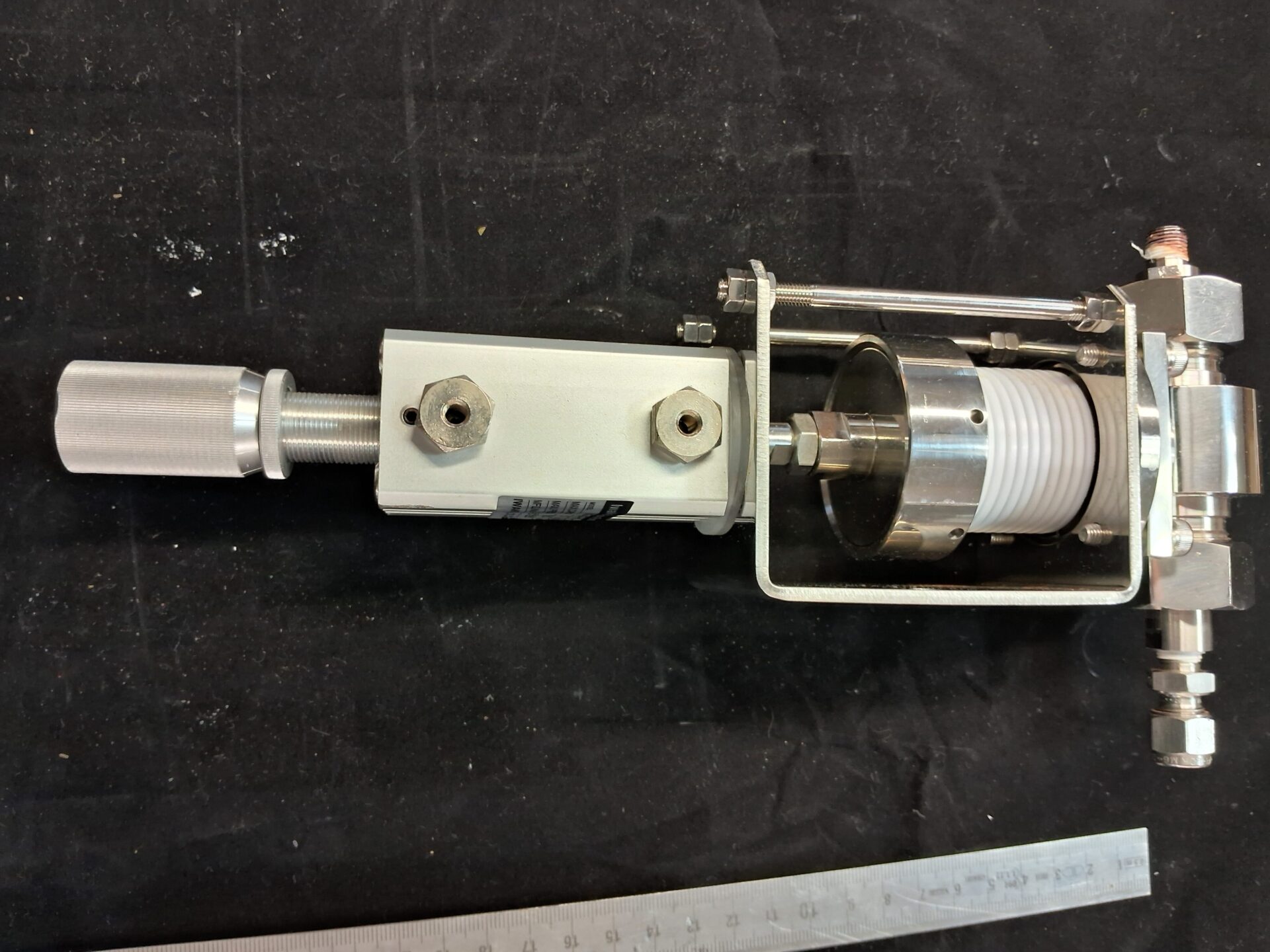 IWAKI SB-4SH-ML bellows pump for vacuum and semiconductor chemical fluid handling. Pneumatic drive, ultra-clean design for aggressive and high-purity process applications. Max. capacity 15mL per stroke, max. pressure 0.05MPa. Used in lab, industrial, and wafer processing environments.