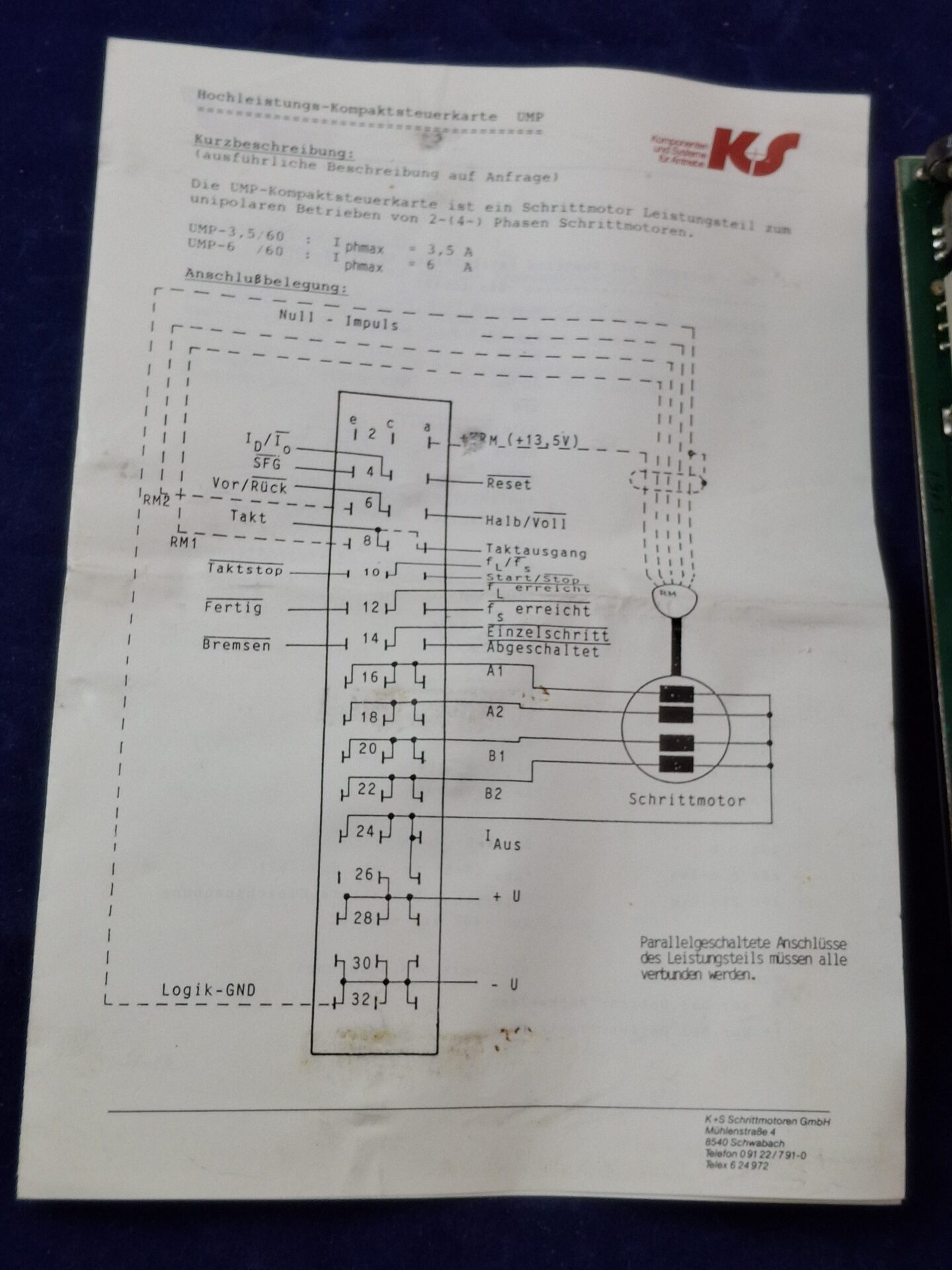 Used KS Komponenten und Systeme UMP series unipolar stepper motor power module for 2- or 4-phase motors, 3.5-6A max current, 60V operation. Suitable for industrial automation and motion control systems.