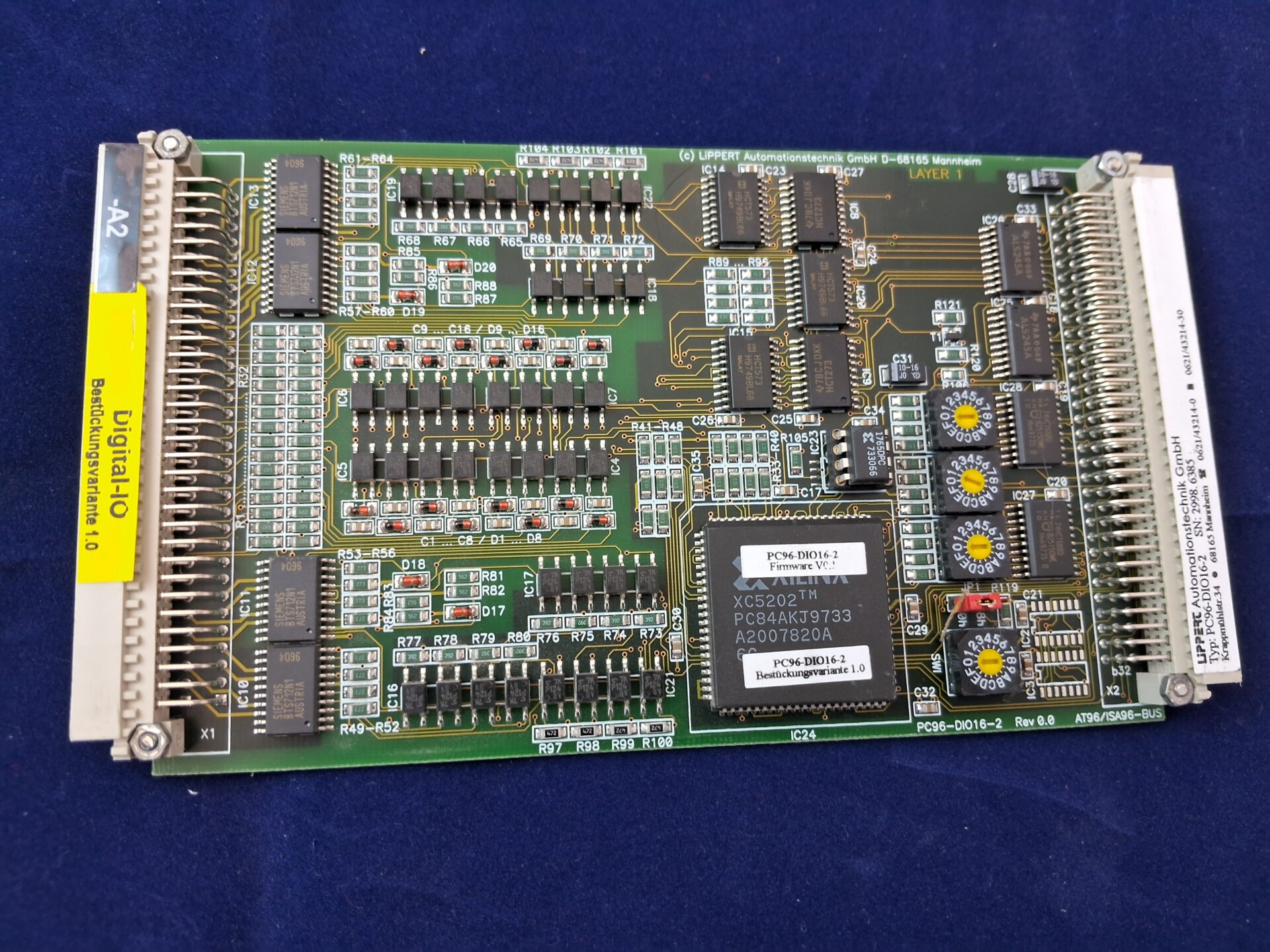 Professional industrial automation controller module: LIPPER Automationstechnik GmbH (Mannheim, Germany) Digital-IO interface board, Model PC96-DIO16-2, Configuration Variant -A2, Assembly Variant 1.0 (Bestückungsvariante 1.0).