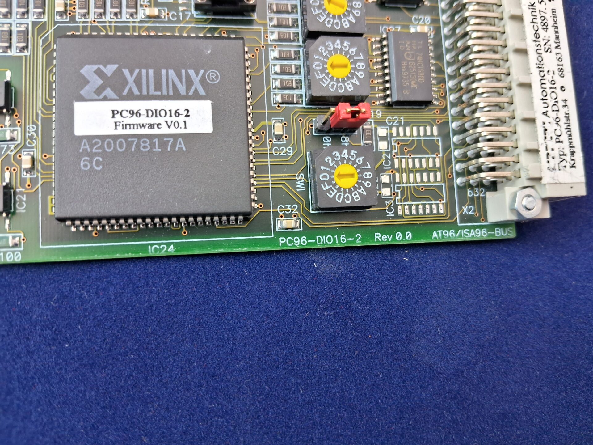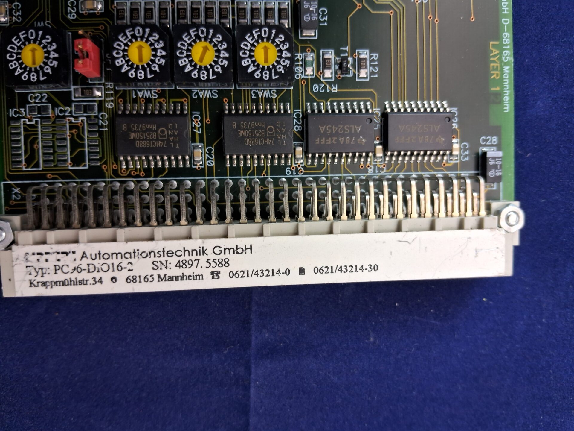 Industrial Controller Fully Populated Production Unit Professional industrial automation controller module: LIPPER Automationstechnik GmbH (Mannheim, Germany) Digital-IO interface board, Model PC96-DIO16-2, fully populated production unit with documented serial number and complete component assembly.