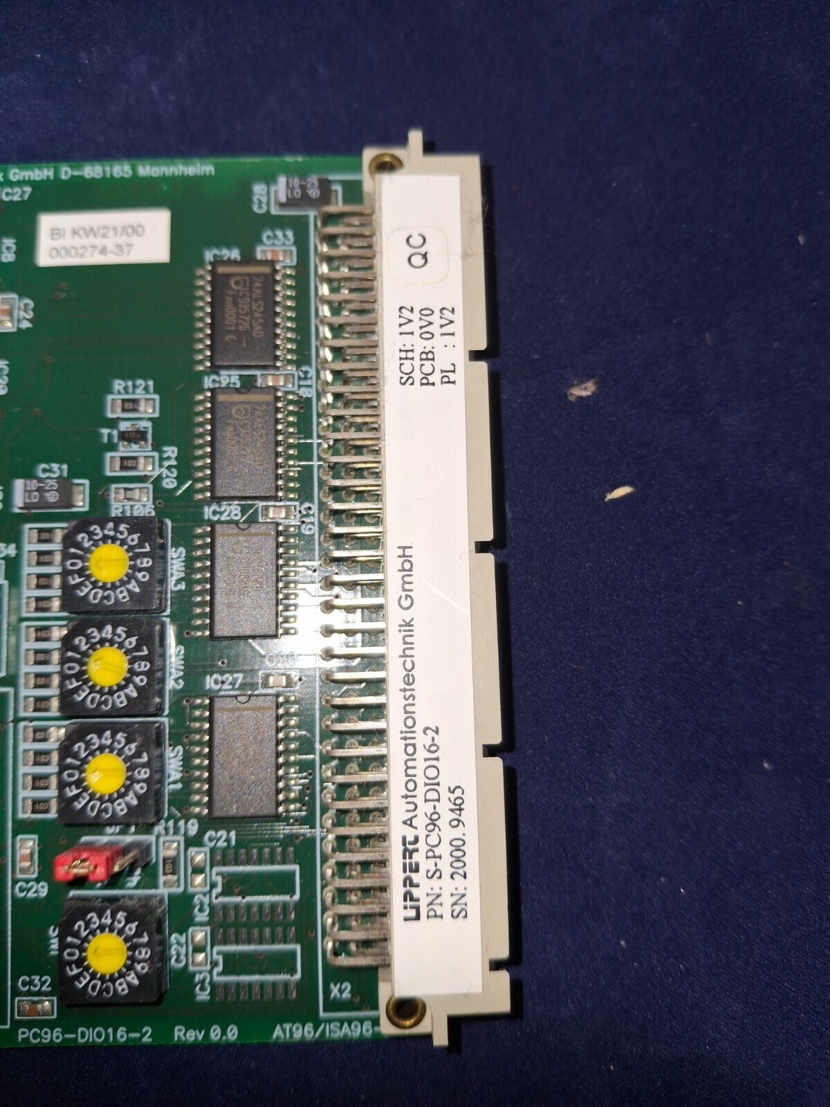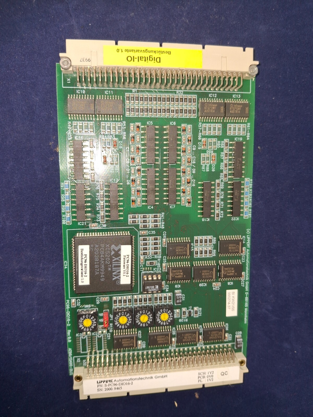 LiPPERT Automationstechnik GmbH S-PC96-DIO16-2 Digital Input/Output Module manufactured 2000 at Mannheim facility with quality control (QC) certification.