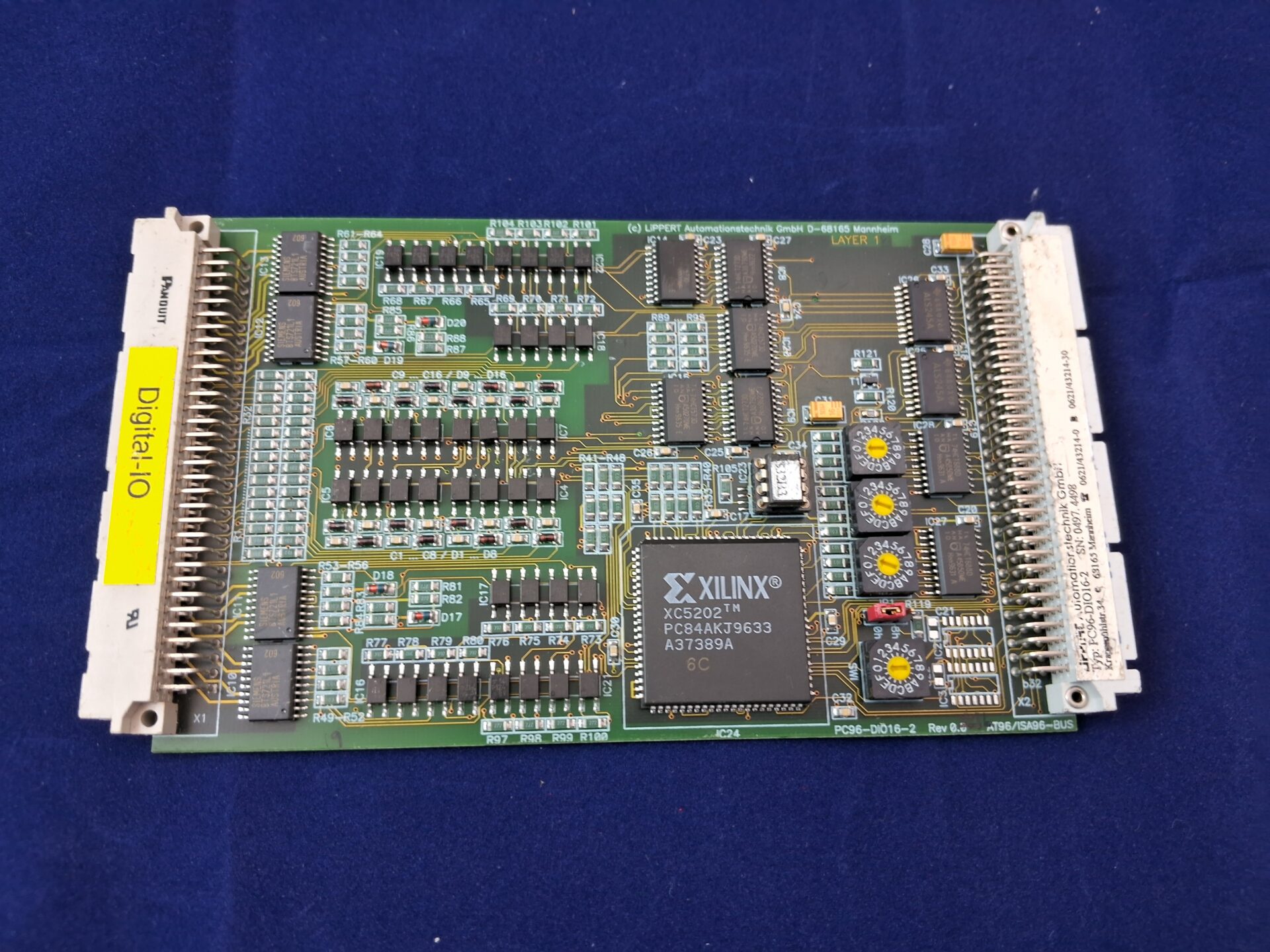 Lippert Automatisierungstechnik GmbH PC96-DIO16-2 industrial digital input/output PLC module, ISA/AT96 bus, 16x isolated 24V digital inputs. Suitable for robust automation. Normal cosmetic wear from previous use