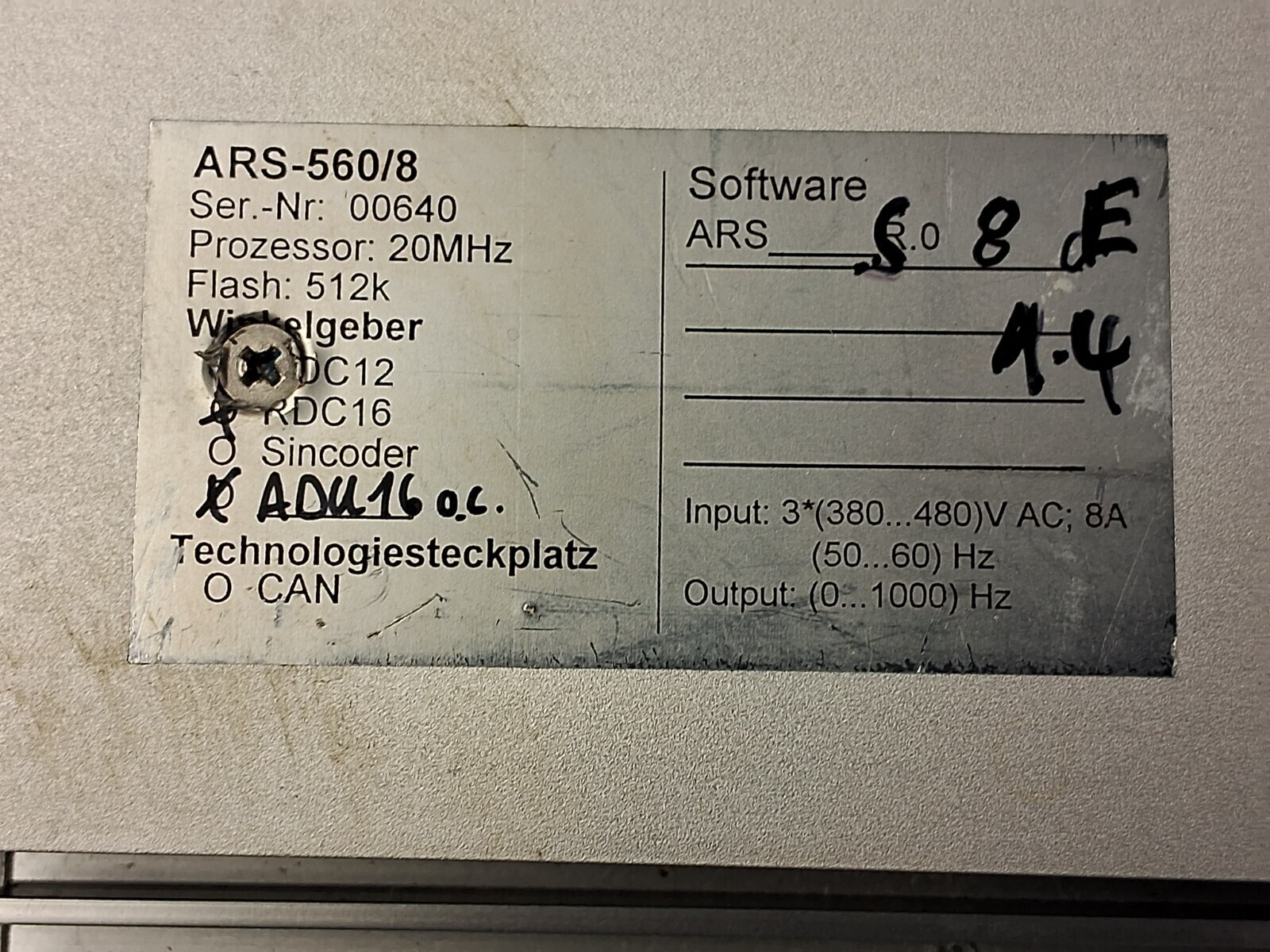 Used Metronix ARS-560/8 servo drive controller with 3x 380-480V AC supply and 8A output, ideal replacement industrial servo drive for motion control applications.