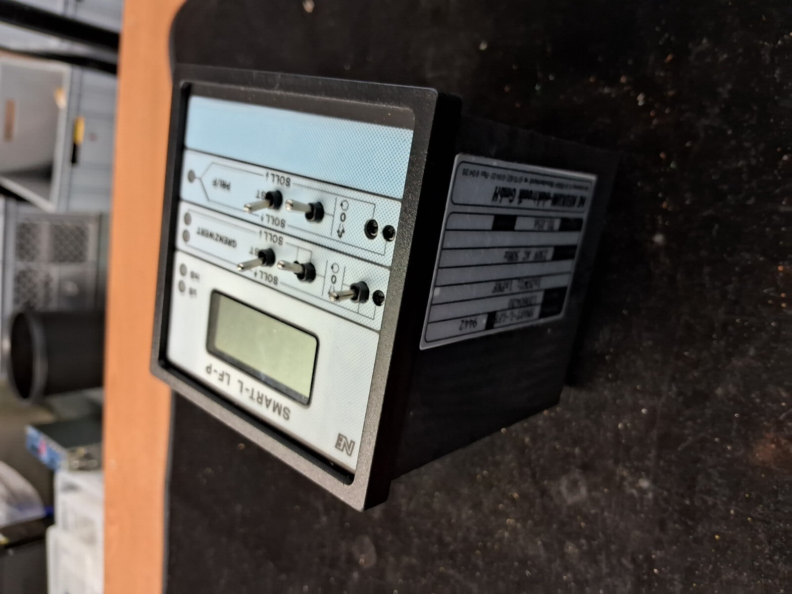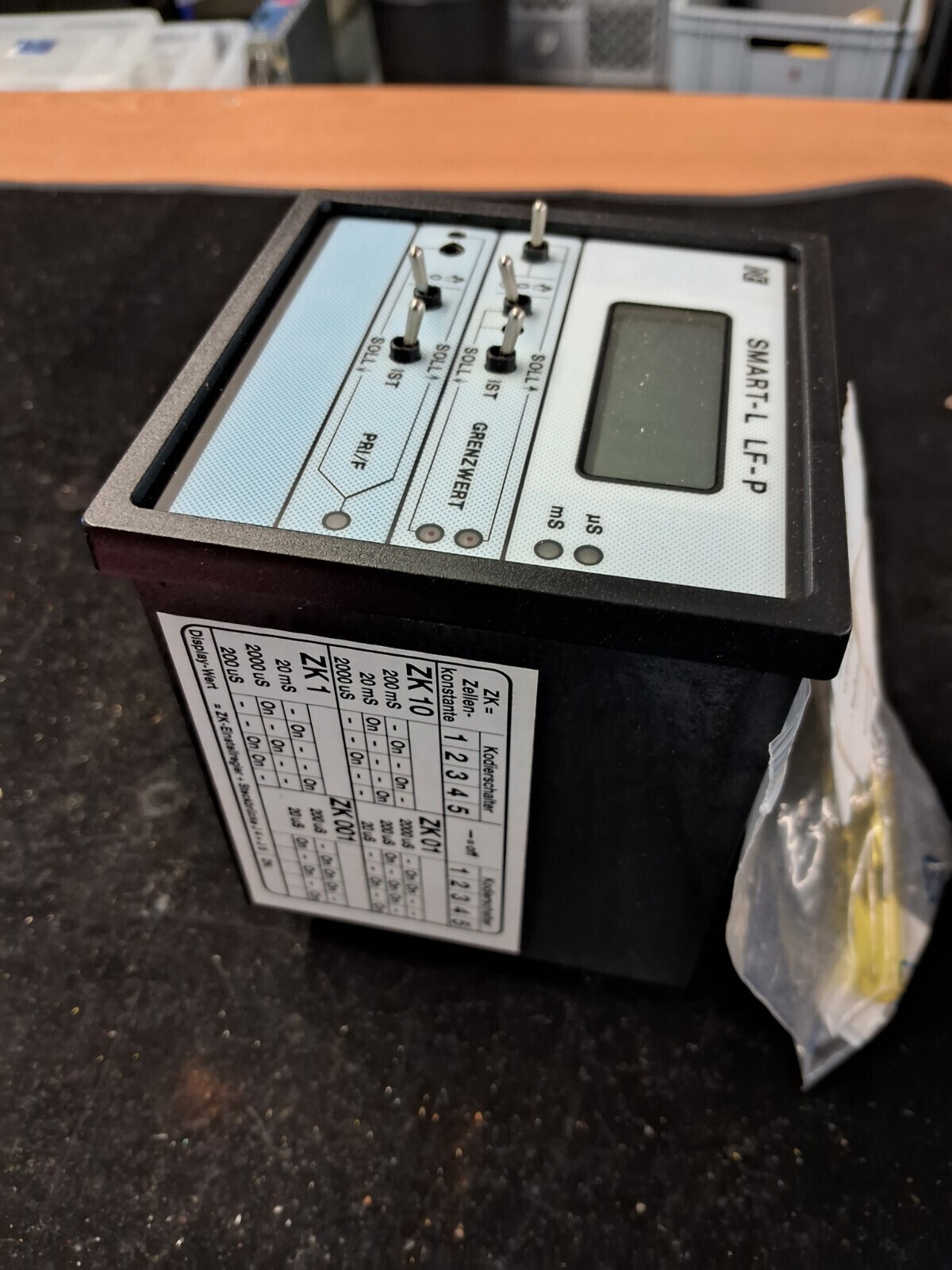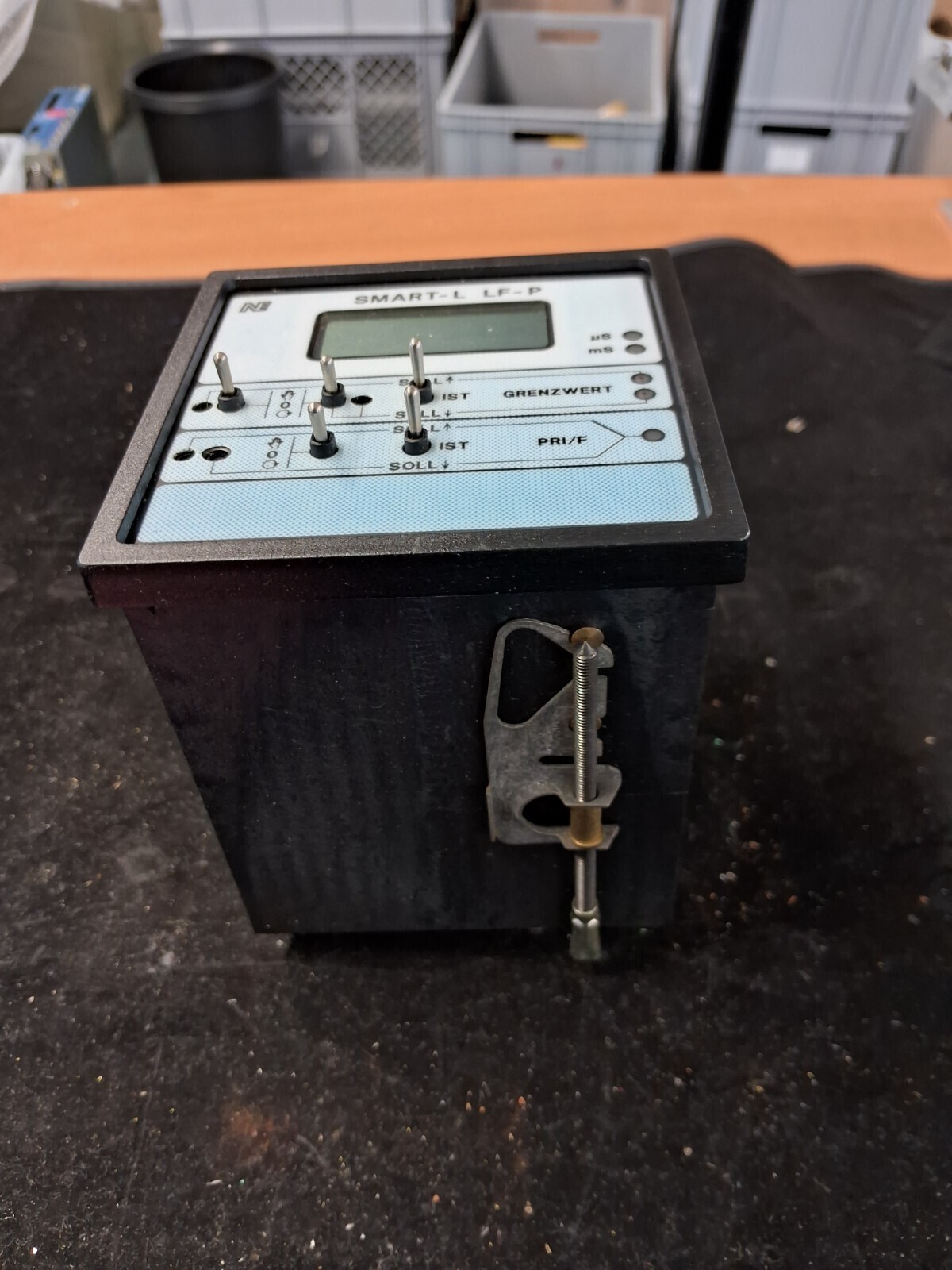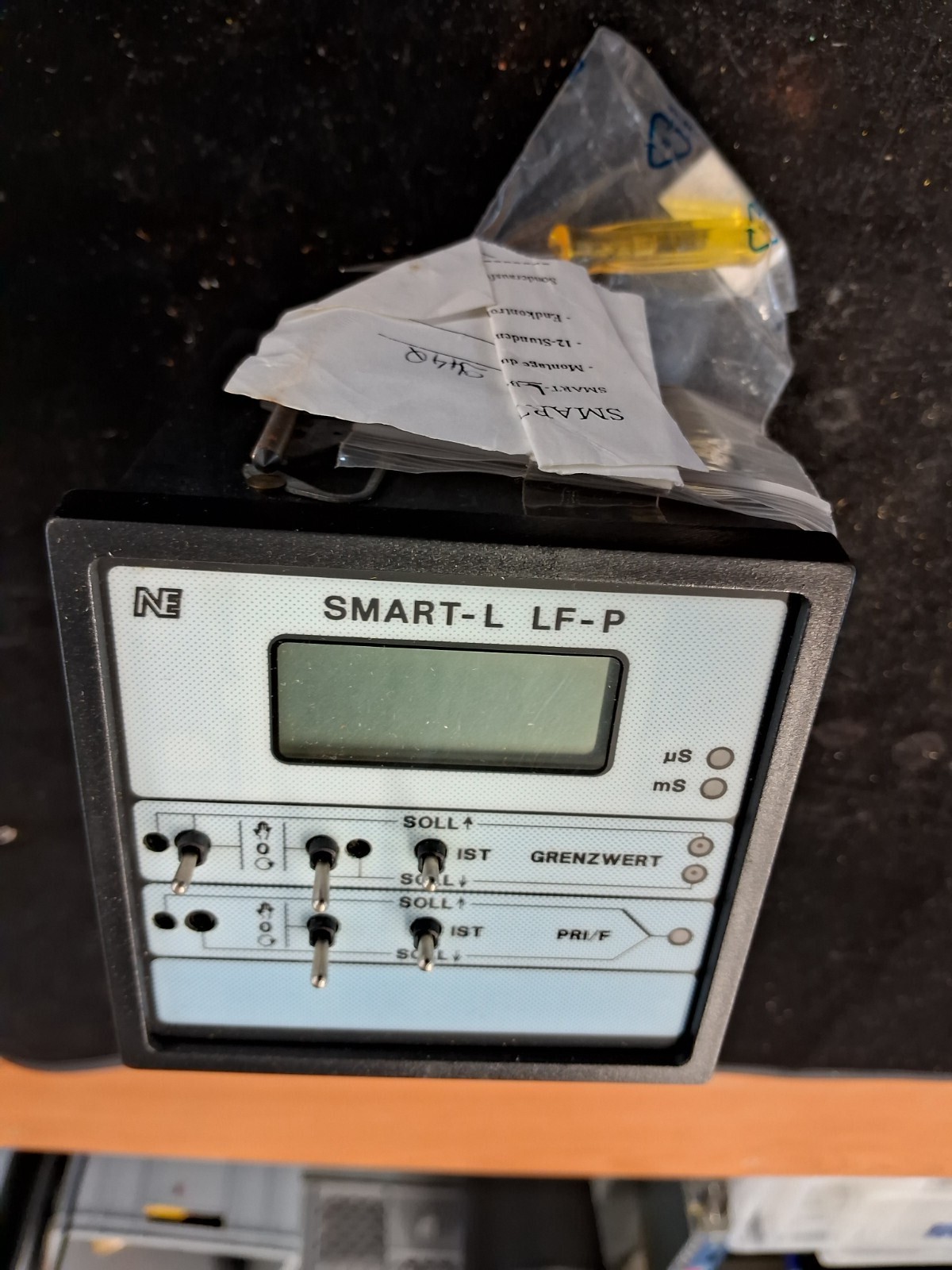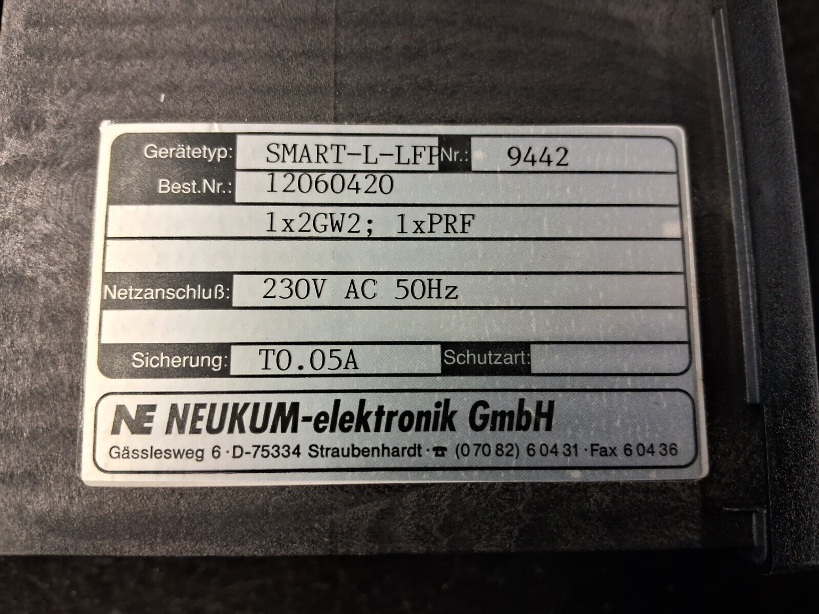 Used Neukum Elektronik SMART-L-LF control unit model 12060420 with 230V AC 50Hz supply and T0.05A fuse, ideal replacement controller module for industrial automation systems.